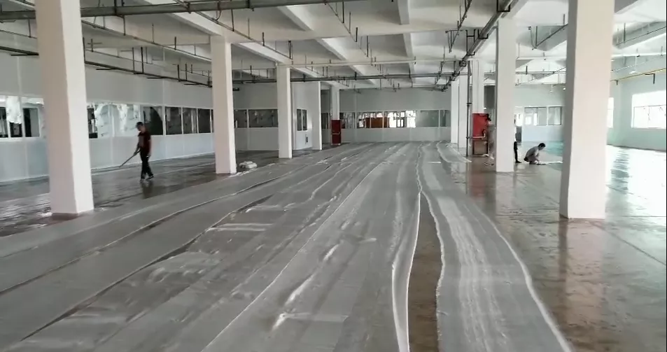 首先攤鋪玻纖布,然后刷涂防腐砂漿中涂,每鋪一層就刷涂一道防腐砂漿中涂,達(dá)到防腐地坪規(guī)定的厚度為止。
