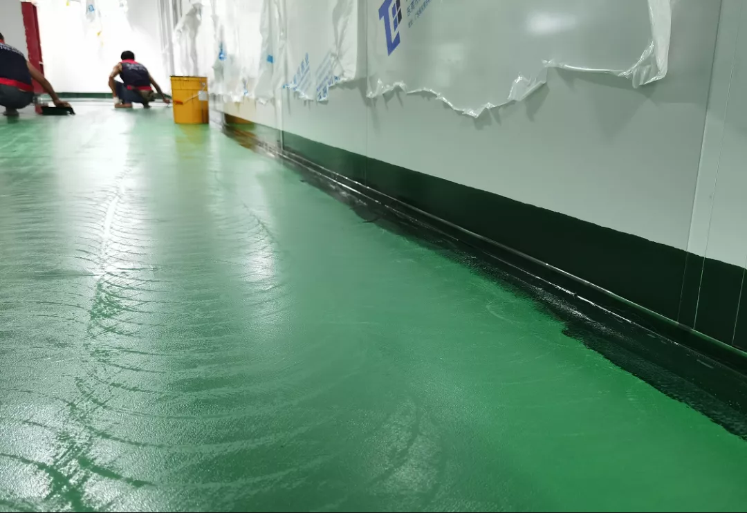 將調(diào)配好的面漆用鏝刀或者輥筒均勻涂布,在完成后,達(dá)到地面整體光亮,顏色均一、沒有空鼓現(xiàn)象。將調(diào)配好的面漆重復(fù)幾遍,從而達(dá)到重防腐效果。